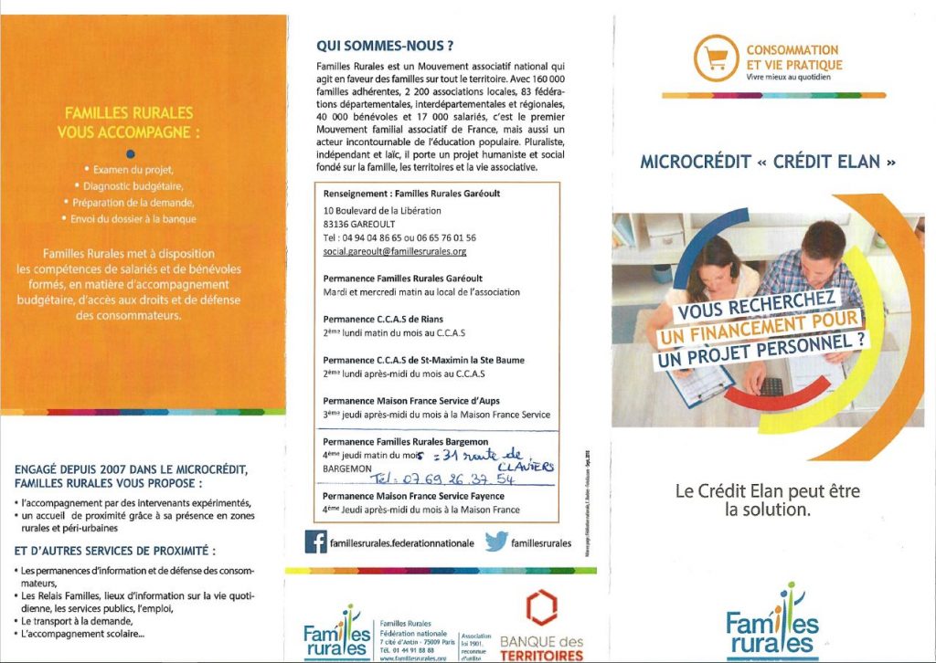 Dans le cadre des actions menées par l’Espace de Vie Sociale et Culturelle (EVS) de Bargemon, nous souhaitons vous informer de la mise en place d’une permanence mensuelle dédiée au micro-crédit et à l’accompagnement dans les démarches administratives.